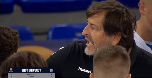 Time for a timeout: Barça storm into a 7:2 lead, so Zagreb head coach Sola needs to give his team additional instructions.