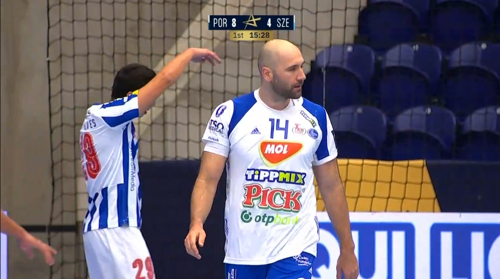 Nikola Mitrevski is having a superb night in the Porto goal, with a 46 per cent save percentage right now. Szeged coach Juan Carlos Pastor just can't believe that none of his side's efforts are making it past the keeper.