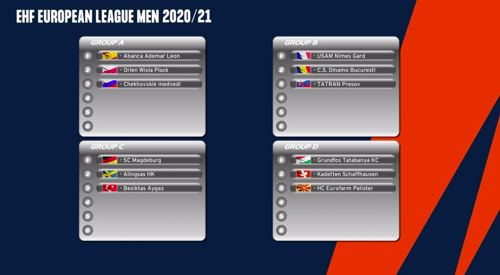 And that's a wrap! The draw for the first EHF European League Men group phase is complete. Here are the four groups.